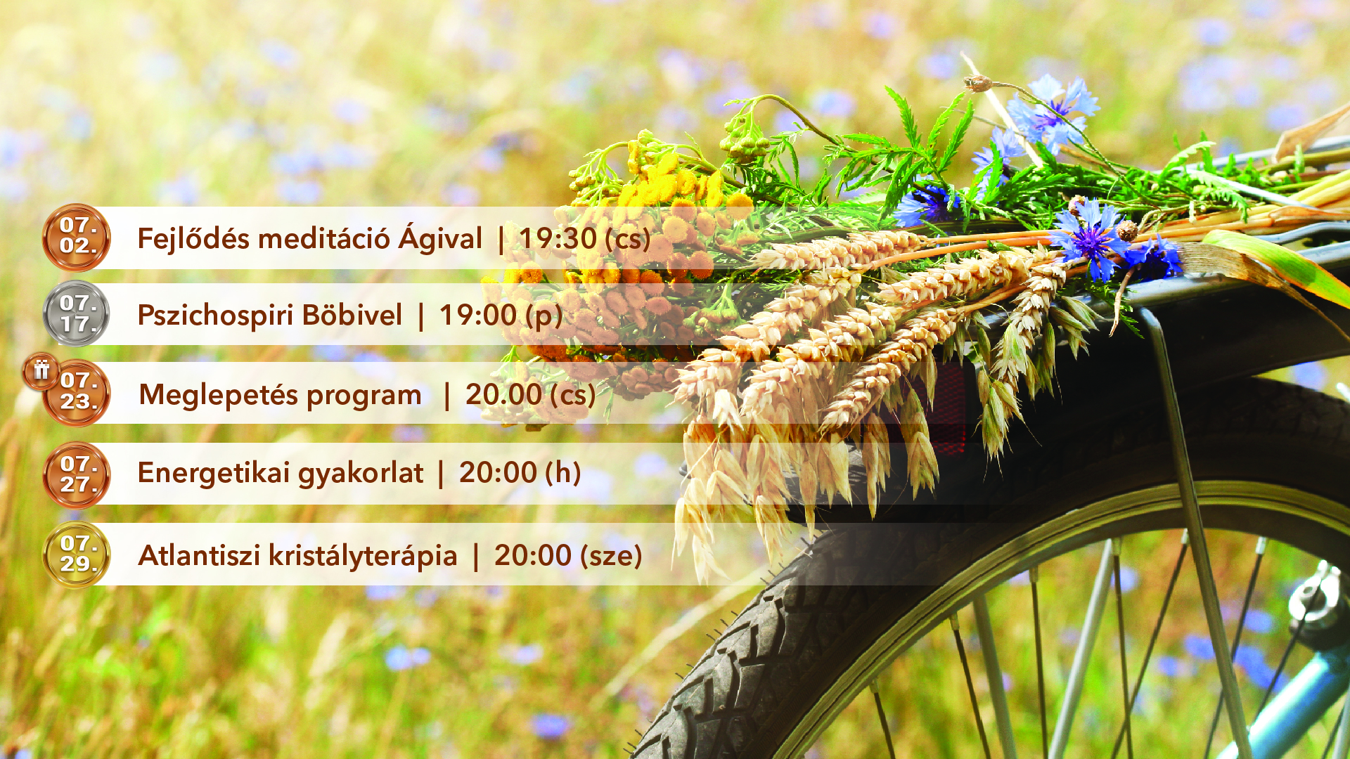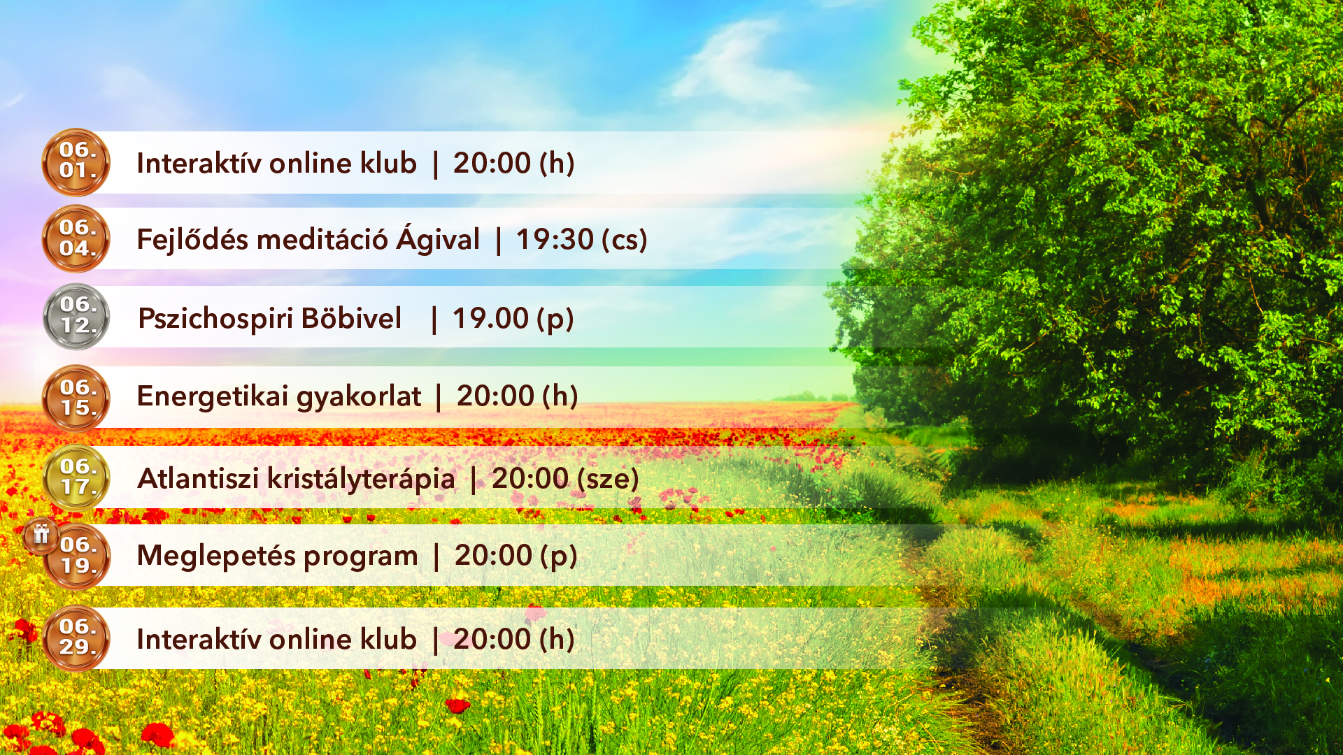 • minden hónapban tudni fogod, hogy az adott hónap miben támogat és az érkező energiákat egy Fejlődés meditáció keretén belül befogadod és hasznosítod úgy, ahogy az neked a legjobb